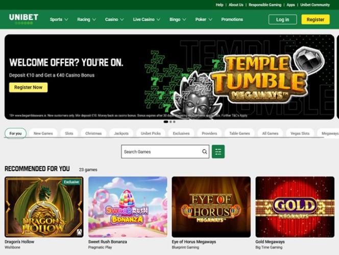 Unibet 提供數百款賭場遊戲,由 Microgaming, Net Entertainment, Playtech, 1x2gaming, Barcrest, Big Time Gaming, ELK Studios, Evolution Gaming, lightningboxgames, Novomatic, Oryx, Play'n GO, playson, Quickspin, Relax Gaming, Thunderkick, Yggdrasil, Realistic Games, Betgames, Stakelogic, Pragmatic Play, Nolimit City, Felt Gaming, Red Tiger Gaming, IGT, Fantasma Games, Kalamba, Spin Games, Skywind, Triple Edge Studios, Northern Lights Gaming, Stormcraft Studios, Electric Elephant Games, Pocket Games Soft, Bulletproof Games, All41 Studios, Gluck Games, Gameburger Studios, Neon Valley Studios, SpinPlay Games, GONG Gaming, Blue Guru Games, On Air Entertainment, Buck Stakes Entertainment, Design Works Gaming, Games Global, Bally Technologies, bluberi, Blueprint Gaming, Greentube, Leander Games, NextGen, Push Gaming, WMS, Inspired Gaming, SG Interactive, Gamomat, Red7Mobile, Scientific Games, Reel Time Gaming, BF Games, Iron Dog Studio, Foxium, Just For The Win, Storm Gaming Technology, PearFiction Studios, Wild Streak Gaming, Slingshot Studios, Fortune Factory Studios, 4ThePlayer, AvatarUX, Gamevy, Crazy Tooth Studio, High 5 Games, ReelPlay, Alchemy Gaming, Rarestone Gaming, BB Games, Black Pudding Games, Snowborn Games, Boomerang Studios, Hacksaw Gaming, Max Win Gaming, Gold Coin Studios, Bang Bang Games, SilverBack Gaming, Peter And Sons, Eurostar Studios, Aurum Signature Studios, Lucksome Gaming, Area Vegas and Betradar提供。豐富的遊戲資源涵蓋老虎機、視訊撲克、桌上遊戲、彩票、賓果遊戲和技巧遊戲。