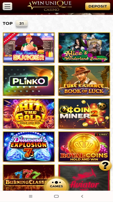 Unique Casino 由 Microgaming, Net Entertainment, BetSoft, Evolution Gaming, Habanero Systems, playson, Rabcat, Rival, Vivo Gaming, Yggdrasil, Endorphina, Wazdan, Arrows Edge, Booming Games, Nolimit City, Booongo, LuckyStreak, Spinomenal, Red Rake Gaming, Fugaso, Platipus Gaming, Triple Edge Studios, BGAMING, Switch Studios, Bulletproof Games, All41 Studios, Gluck Games, Mascot Gaming, Gameburger Studios, Pulse 8 Studios, Neon Valley Studios, SpinPlay Games, Mancala Gaming, SmartSoft Gaming, Real Dealer Studios, GONG Gaming, Caleta Gaming, Eurasian Gaming, Games Global, Reevo, 2by2 Gaming, Merkur Gaming, Tom Horn Gaming, Old Skool Studios, Foxium, Just For The Win, Reflex Gaming, Storm Gaming Technology, PearFiction Studios, Slingshot Studios, Fortune Factory Studios, Jade Rabbit Gaming, RubyPlay, AvatarUX, Gamevy, Crazy Tooth Studio, ReelPlay, Alchemy Gaming, BB Games, Snowborn Games, Boomerang Studios, Hacksaw Gaming, Gold Coin Studios, Bang Bang Games, Half Pixel Studios, Arcadem, Triple Cherry, Peter And Sons, Eurostar Studios and Aurum Signature Studios提供支持,其平台透過網頁用戶端部署,無需下載任何軟體。網站看起來或多或少有點平庸,這有點令人失望,因為我原本以為這家賭場的名字會有點特別或酷炫。這家賭場也完全支援行動裝置遊戲,因此只要有數據連接,你就可以在智慧型手機或平板電腦上投注。