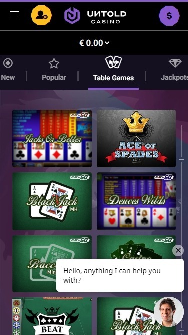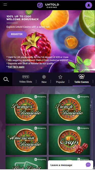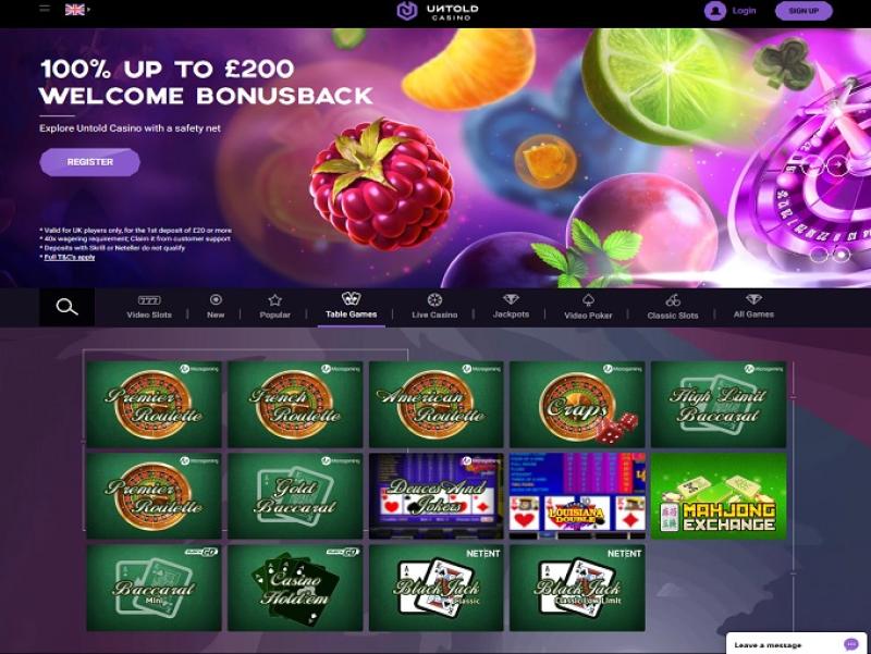 Untold Casino 由 Microgaming, Net Entertainment, BetSoft, Big Time Gaming, Evolution Gaming, Ezugi, Genesis Gaming, Play'n GO, Rabcat, Yggdrasil, Endorphina, GameArt, Pragmatic Play, Booongo, Fantasma Games, Games Global, NextGen and Old Skool Studios提供支持,其遊戲採用網頁即時遊戲模式,可直接透過您的網頁瀏覽器載入。該網站還全面支援行動端遊戲,相容於智慧型手機和平板電腦。