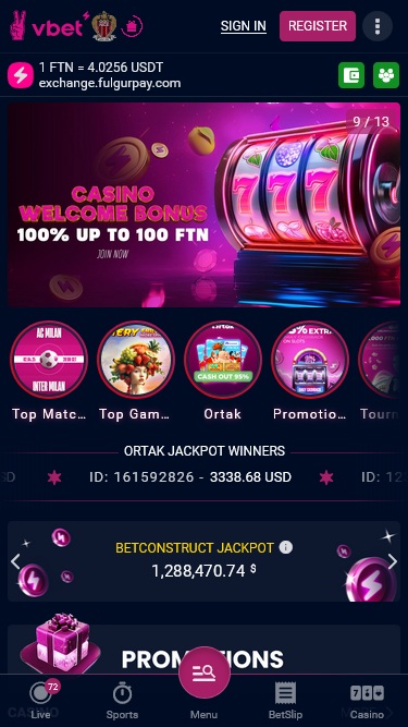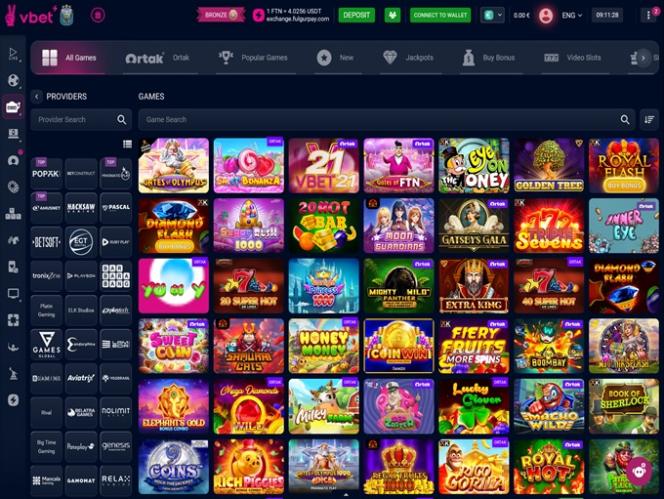 Vbet Casino 由 Microgaming, Net Entertainment, Playtech, BetSoft, 1x2gaming, Amatic Industries, Big Time Gaming, ELK Studios, Espresso Games, Evolution Gaming, EYECON, Ezugi, Genesis Gaming, Habanero Systems, iSoftBet, Novomatic, Oryx, playson, Quickspin, Rabcat, Relax Gaming, Rival, Saucify, Thunderkick, Vivo Gaming, WM, Yggdrasil, Endorphina, Wazdan, Realistic Games, GameArt, Betgames, Booming Games, BetConstruct, Stakelogic, Pragmatic Play, Nolimit City, Felt Gaming, Red Tiger Gaming, ZEUS Services, Booongo, LuckyStreak, Spinomenal, Felix Gaming, Red Rake Gaming, Inbet Games, Skillzzgaming, Xprogaming, Fugaso, Belatra Games, Fantasma Games, SYNOT Games, Kalamba, Revolver Gaming, Spin Games, Platipus Gaming, Skywind, Spinmatic, Spadegaming, Triple Edge Studios, BGAMING, Northern Lights Gaming, Fazi, Evoplay, Stormcraft Studios, Switch Studios, SA Gaming, OneTouch, Electric Elephant Games, Pocket Games Soft, Dreamtech Gaming, Bulletproof Games, All41 Studios, Gluck Games, Mascot Gaming, TVBet, NetGame Entertainment, Gameburger Studios, Pulse 8 Studios, Slot Factory, Neon Valley Studios, DLV, FashionTV, Golden Rock Studios, Radi8 Games, Spearhead Studios, ThunderSpin, SpinPlay Games, Mancala Gaming, 7Mojos, SmartSoft Gaming, KA Gaming, Atmosfera, FilsGame, GONG Gaming, Blue Guru Games, Lady Luck Games, On Air Entertainment, Buck Stakes Entertainment, Caleta Gaming, Creedroomz, Eurasian Gaming, Games Global, Amusnet Interactive, Wizard Games, Ash Gaming, bluberi, Blueprint Gaming, CT Interactive, GamesOS, Greentube, omi-gaming, Pariplay, Tom Horn Gaming, Genii, Gamomat, PlatinGaming, RFranco Group, Wager Gaming, Reel Time Gaming, MGA, BF Games, Bally Wulff, Capecod Gaming, Iron Dog Studio, Old Skool Studios, Foxium, Zitro, Just For The Win, Reflex Gaming, Aspect Gaming, Storm Gaming Technology, PearFiction Studios, Apollo Games, Wild Streak Gaming, Slingshot Studios, Golden Hero, Fortune Factory Studios, Jade Rabbit Gaming, STHLM Gaming, RubyPlay, 4ThePlayer, AvatarUX, Gamevy, Crazy Tooth Studio, NetGaming, High 5 Games, Groove Gaming, ReelPlay, Japan Technicals Games, SlotVision, PlayStar, Alchemy Gaming, Rarestone Gaming, BB Games, Black Pudding Games, Snowborn Games, Boomerang Studios, Hacksaw Gaming, Max Win Gaming, Gold Coin Studios, Bang Bang Games, Gamzix, Half Pixel Studios, Arcadem, Slotmill, Triple Cherry, SilverBack Gaming, Dragon Gaming, Peter And Sons, Eurostar Studios, Aurum Signature Studios, Charismatic, Lotto Instant Win, Onlyplay, FastSpin, Armadillo Studios, Lucksome Gaming, Gamebeat, FlipLuck, Dragoon Soft, Urgent Games, Area Vegas, ELA Games, Leap Gaming, Betradar, PoggiPlay, GoldenRace, Aviatrix, AGT Software, Kiron, 3 Oaks Gaming, Amigo Gaming, Wishbone Games, LiveGames, Yeebet Gaming, PopOK Gaming, Spribe, Jili, Circular Arrow, Print Studios, 5Men Gaming, HammerTime Games, BetSolutions, Four Leaf Gaming, INO Games, Nailed It! Games, Atomic Slot Lab, Neko Games, Reel Kingdom, Oros Gaming, Givme Games, JVL, Indigo Magic, Live88, Bigpot Gaming, VoltEnt and PlayAce提供支持,其遊戲透過基於網路的平台以及允許賭客隨時隨地玩的行動網站提供。