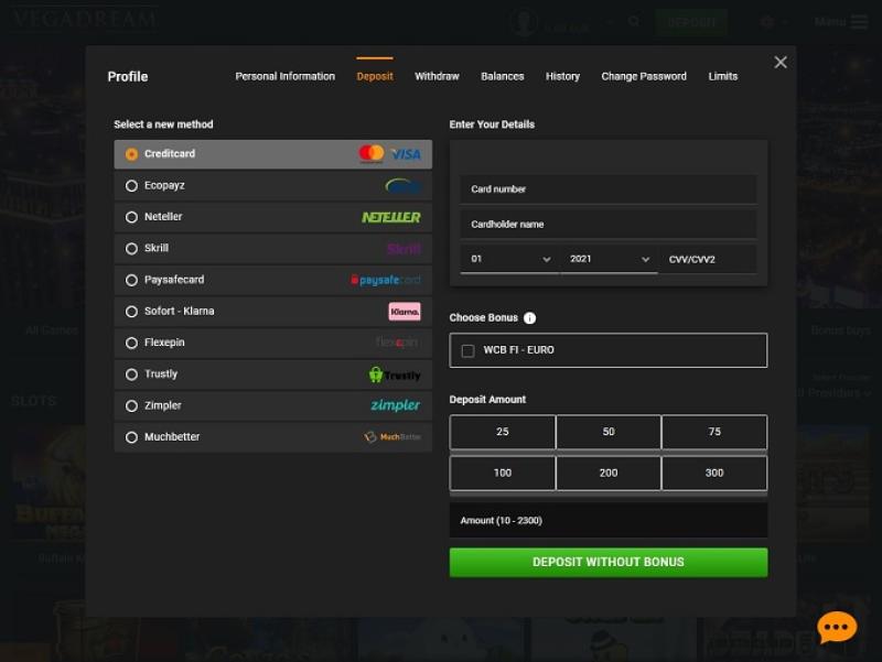 在 Vegadream 建立帳戶只需幾分鐘,非常簡單。另一方面,驗證過程則更為複雜。除了個人資料外,玩家可能還需要提供其他文件,以進行全面的帳戶驗證,並在任何付款獲得批准和處理之前進行。