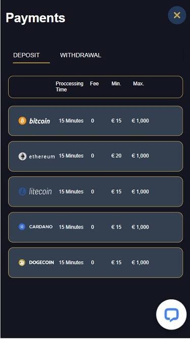 $15 (Crypto)/$25 (Credit/Debit Cards)
