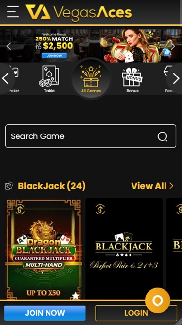 VegasAces Casino 與 BetSoft、Rival、KA Gaming、Mancala Gaming 等軟體工作室以及其他知名公司合作,以便玩家可以瀏覽多樣化、高品質的賭博內容。