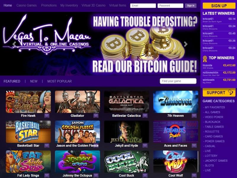 拉斯維加斯到澳門賭場由 Microgaming, Net Entertainment, BetSoft, SOFTSWISS and Games Global提供支持,其遊戲透過基於網頁的即時遊戲平台提供。此外,也提供行動網站,方便想要隨時隨地暢玩的玩家。Baccarat