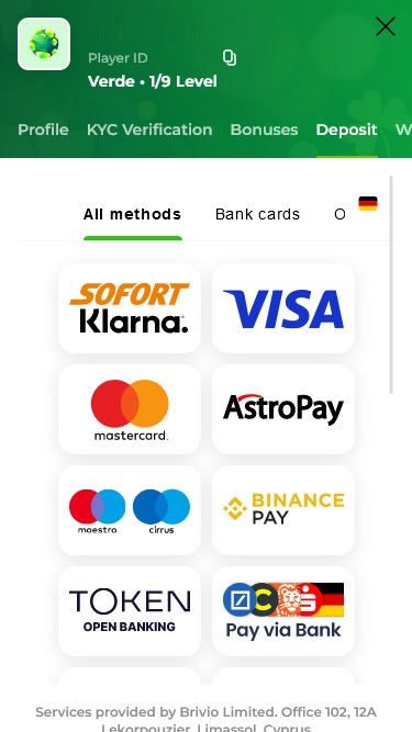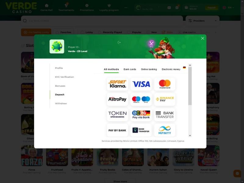 Verde Casino 由 Brivio Limited 經營,該公司在塞浦路斯共和國註冊,因此受該國所有法律的約束。