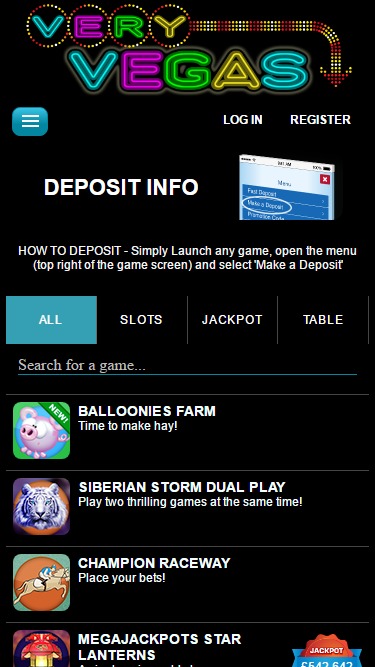 Very Vegas 行動賭場是一個線上博彩網站,成立於 2013 年,由 GTech Interactive 營運。該網站僅支援行動設備,且僅向英國地區提供服務。其軟體系統由 IGT 和 Probability Games 獨家提供,玩家幾乎肯定會在這裡看到他們過去在實體賭場見過的遊戲。賭場資訊