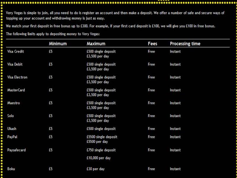 Very Vegas 行動賭場的銀行系統功能略有不足,但對於行動博弈網站來說仍然相當不錯。存款和提款可透過 Visa、MasterCard、Paysafecard、Solo、PayPal 和 Maestro 進行,也可以透過銀行轉帳提款。 PayPal 每日提款限額為 1,000 英鎊,信用卡和金融卡可每日進行五筆交易,每筆限額為 20,000 英鎊。提款處理時間約 3-5 天。Banking銀⾏業務選項 的 Very Vegas Mobile Casino