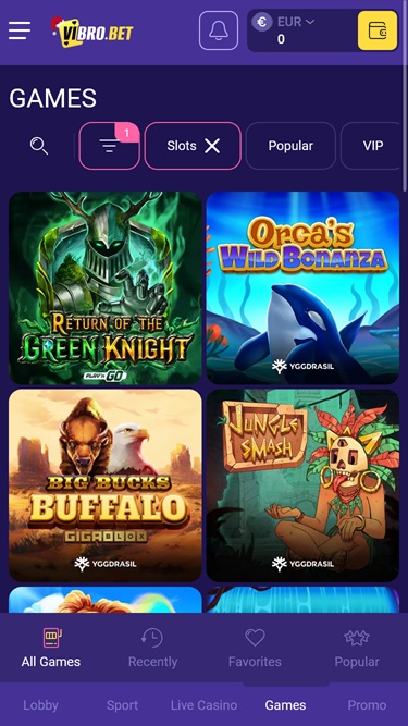 正如我們之前提到的,VibroBet 賭場擁有非常豐富的遊戲庫,這是透過與 50 多家知名iGaming 開發商合作實現的,這些開發商不斷為遊戲庫提供新的遊戲。