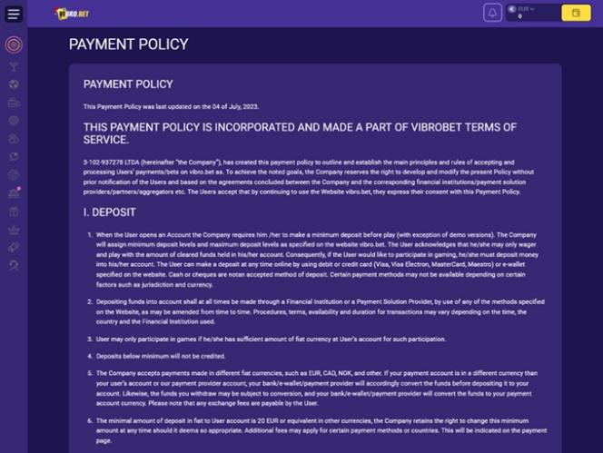 但在開始之前,請務必注意,VibroBet Casino目前沒有營運執照,其網站上也沒有任何相關證書。儘管如此,這並不意味著該網站就一定不可靠,但我們建議您謹慎行事,因此在加入網站之前請務必牢記這一點。