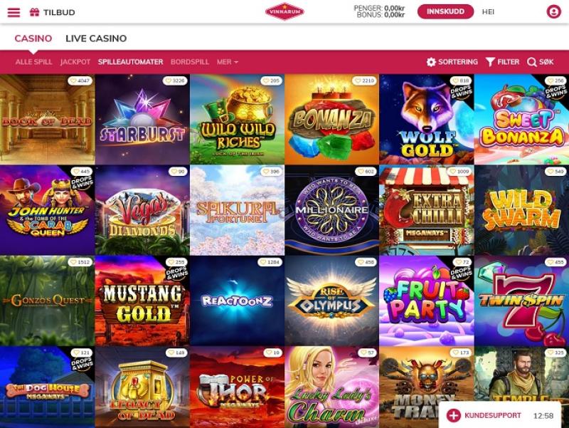 Vinnarum 賭場由 Microgaming, Net Entertainment, Playtech, BetSoft, 1x2gaming, Barcrest, Big Time Gaming, ELK Studios, Evolution Gaming, lightningboxgames, Novomatic, Play'n GO, playson, Quickspin, Rabcat, Relax Gaming, Thunderkick, Yggdrasil, Wazdan, Realistic Games, Stakelogic, Pragmatic Play, Nolimit City, Felt Gaming, Red Tiger Gaming, Fantasma Games, Kalamba, Triple Edge Studios, Northern Lights Gaming, Stormcraft Studios, Electric Elephant Games, Bulletproof Games, All41 Studios, Gluck Games, Gameburger Studios, Pulse 8 Studios, TrueLab Games, Shuffle Master, HungryBear Gaming, Games Global, Aristocrat, Bally Technologies, Blueprint Gaming, Greentube, Leander Games, NextGen, Push Gaming, WMS, Inspired Gaming, SG Interactive, Gamomat, Red7Mobile, CORE Gaming, Reel Time Gaming, Bally Wulff, Iron Dog Studio, Foxium, Betdigital, Just For The Win, Reflex Gaming, Storm Gaming Technology, PearFiction Studios, Wild Streak Gaming, Slingshot Studios, Fortune Factory Studios, STHLM Gaming, 4ThePlayer, AvatarUX, Gamevy, Crazy Tooth Studio, High 5 Games, ReelPlay, Rarestone Gaming, BB Games, Black Pudding Games, Boomerang Studios, Bang Bang Games, SilverBack Gaming, Peter And Sons, Eurostar Studios and Lucksome Gaming提供支持,這使其擁有包含數百款遊戲的豐富遊戲庫。玩家可以透過網頁平台造訪賭場,從而可以直接透過網頁瀏覽器玩遊戲。