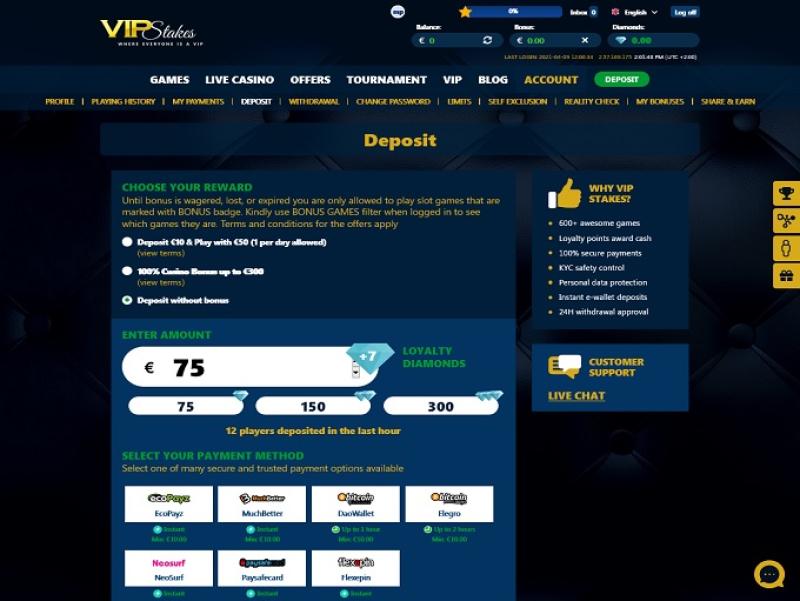 VIP Stakes Casino 由 Microgaming, Net Entertainment, BetSoft, 1x2gaming, Amatic Industries, Big Time Gaming, ELK Studios, Evolution Gaming, Ezugi, Habanero Systems, iSoftBet, Oryx, playson, Quickspin, Relax Gaming, SOFTSWISS, Thunderkick, Yggdrasil, Endorphina, Wazdan, Booming Games, BetConstruct, Stakelogic, Pragmatic Play, Nolimit City, Felt Gaming, Red Tiger Gaming, Red Rake Gaming, Fantasma Games, SYNOT Games, Kalamba, Revolver Gaming, Skywind, Spinmatic, Spadegaming, BGAMING, Northern Lights Gaming, Electric Elephant Games, Pocket Games Soft, Gluck Games, Slot Factory, Spearhead Studios, Swintt, HungryBear Gaming, Blue Guru Games, Lady Luck Games, Games Global, Amusnet Interactive, Wizard Games, Blueprint Gaming, CT Interactive, GamesOS, Leander Games, Merkur Gaming, Pariplay, Push Gaming, Tom Horn Gaming, Gamomat, Reel Time Gaming, BF Games, Bally Wulff, Storm Gaming Technology, Wild Streak Gaming, Golden Hero, Jade Rabbit Gaming, STHLM Gaming, 4ThePlayer, Gamevy, NetGaming, Japan Technicals Games, Black Pudding Games, Hacksaw Gaming, Max Win Gaming, Arcadem, Slotmill, SilverBack Gaming, Peter And Sons, Aurum Signature Studios, Armadillo Studios and FlipLuck提供支持,您可以直接透過賭場的網頁存取賭場。