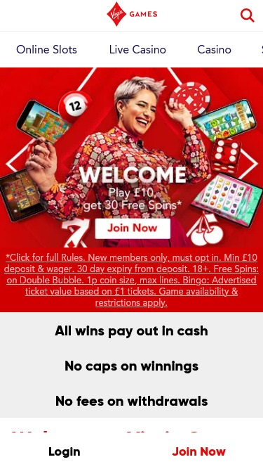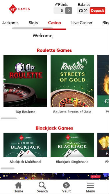 Virgin Games 由 Microgaming, Net Entertainment, Barcrest, Big Time Gaming, Evolution Gaming, EYECON, Gamesys, lightningboxgames, Novomatic, Oryx, Play'n GO, Relax Gaming, Realistic Games, Pragmatic Play, Red Tiger Gaming, IGT, Fantasma Games, Spin Games, Triple Edge Studios, Stormcraft Studios, All41 Studios, Gameburger Studios, Neon Valley Studios, Shuffle Master, SpinPlay Games, HungryBear Gaming, Buck Stakes Entertainment, Games Global, Bally Technologies, Blueprint Gaming, Greentube, Push Gaming, WMS, Inspired Gaming, Gaming Realms, SG Interactive, Red7Mobile, Scientific Games, Reel Time Gaming, Just For The Win, PearFiction Studios, Wild Streak Gaming, Slingshot Studios, Fortune Factory Studios, 4ThePlayer, High 5 Games, Snowborn Games, Area Vegas and RAW iGaming提供支持,因此擁有龐大的遊戲庫,可透過賭場網站存取。此外,也為喜歡使用平板電腦或智慧型手機玩遊戲的玩家提供行動網站。