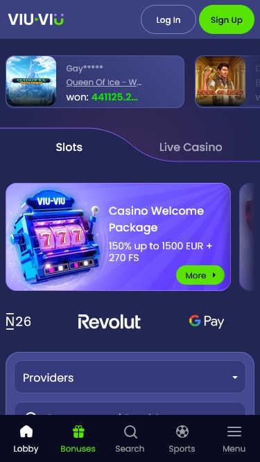 Viu Viu Casino 是一個博彩網站,主要為加拿大和荷蘭玩家提供遊戲和內容。它提供豐富的賭場遊戲,包括老虎機、桌上遊戲、真人荷官和速成遊戲,同時也提供眾多體育博彩選項。憑藉其強大的促銷計劃、豐富的獎金和加密貨幣可用,難怪如此多的荷蘭和加拿大玩家對這個品牌讚不絕口。