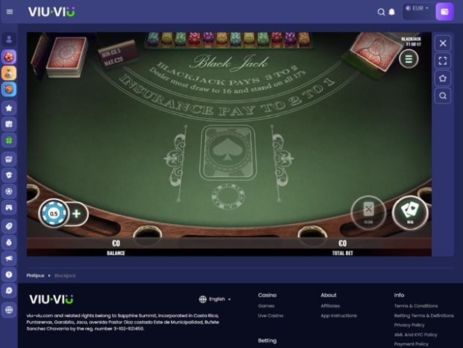 Viu Viu Casino Blackjack (Platipus Gaming)展開