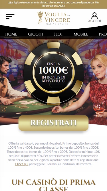 Voglia di Vincere 是一家線上博彩網站,成立於 2014 年,僅在義大利境內營運。 Voglia di Vincere 的英文意思是「渴望勝利」。該網站擁有豐富的遊戲庫、快速的獎金支付和合理的獎金條款,所有這些都使其成為義大利境內玩家的理想選擇。