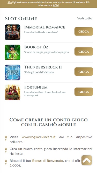 Voglia di Vincere 由 Microgaming and Games Global提供支持,賭場遊戲透過基於網頁的即時遊戲平台提供。該平台意味著您可以直接透過互聯網瀏覽器進行遊戲。該網站支援行動端遊戲,因此您可以在智慧型手機或平板電腦上輕鬆測試您的運氣。