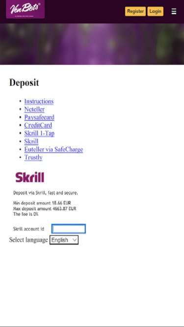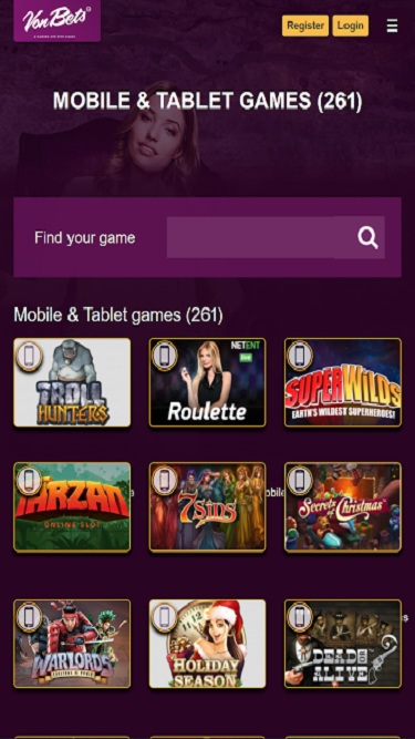 VonBets 賭場由 Microgaming, Net Entertainment, Big Time Gaming, Genesis Gaming, Play'n GO, Quickspin, Rabcat, Games Global, bluberi and Tain提供支持,其平台可透過網頁即時遊戲平台訪問,讓您透過電腦網頁瀏覽器註冊、存款、遊戲和提款。當然,VonBets 也提供完整的行動網站,讓玩家可以在任何有數據連線的地方,透過智慧型手機或平板電腦進行投注。