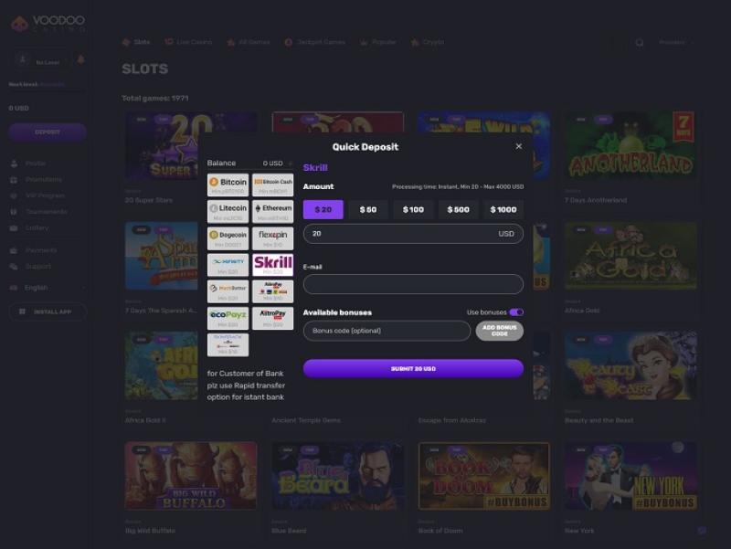 Voodoo Casino 是一家線上賭場,由一家根據庫拉索法律註冊的經驗豐富的 iGaming 公司擁有和經營,並由 Antillephone NV 許可和監管。