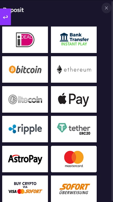 說到您可以選擇的銀行選項,業者提供萬事達卡、Trustly、Google Pay 和銀行電匯等傳統支付方式。除了這些傳統的銀行支付方式外,您還可以選擇使用比特幣和以太幣等加密貨幣。隨著加密貨幣越來越受歡迎,其在線上賭場的使用量也急劇增加。我們很高興看到這些運營商也加入了這一潮流,因為這無疑是吸引更多玩家加入您平台的好方法。