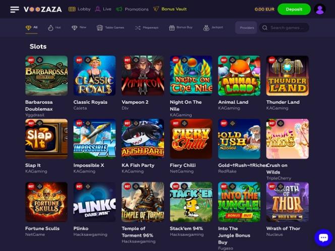 由於 VooZAZA Casino 是一個整體速度非常快的平台,因此無論流量大小或同時有多少玩家在玩遊戲,瀏覽網站的過程也得到了加快。