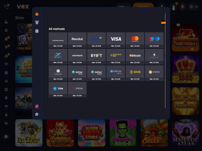 Banking銀⾏業務選項 的 VOX Casino