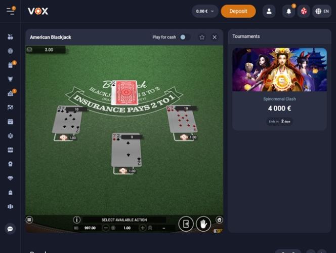 VOX Casino Blackjack (BGAMING)展開