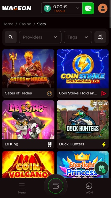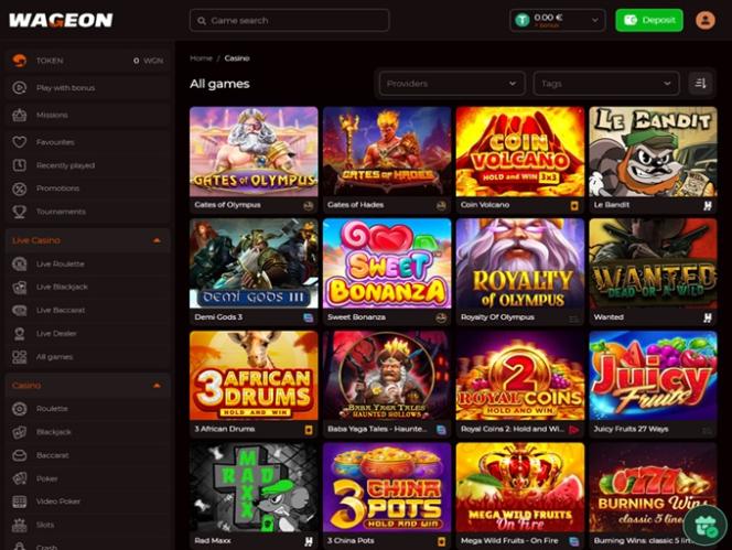 Evolution Gaming、Net Entertainment、Endorphina、No Limit City、Spinomenal、Platypus Gaming和許多其他線上賭場軟體公司正在為 Wageon Casino 提供內容。