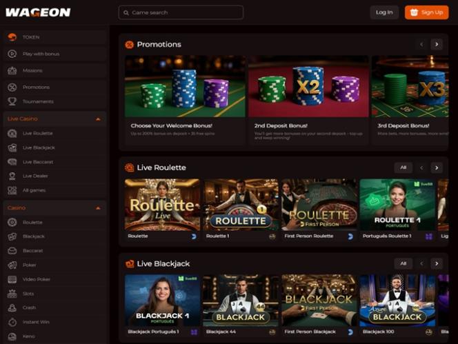 促銷標籤附有吸引人的選項,例如針對首次玩家的介紹優惠,可與 Wageon Casino 的前三筆存款一起使用。
