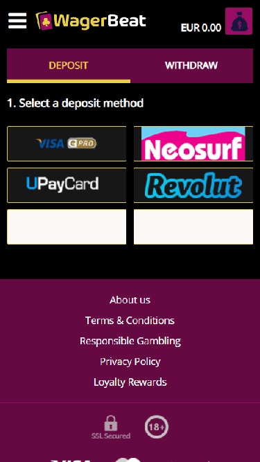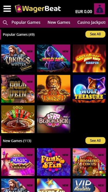 Wager Beat 賭場由 BetSoft, Amatic Industries, iSoftBet, Endorphina, Booming Games, Booongo, Red Rake Gaming, Ainsworth and Gamomat提供支持,並透過您常用的瀏覽器存取網頁平台。該賭場還全面支援行動端遊戲,您可以使用智慧型手機或平板電腦參與其中。