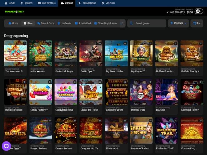 Wager Street 線上賭場提供豐富多樣的遊戲,滿足各種玩家的需求,從真錢老虎機、真人荷官桌游到經典桌遊、即時崩潰遊戲和刮刮卡,應有盡有。除了豐富的遊戲選擇,該網站還不斷推出新的促銷活動,提供一系列獎金和特別優惠,旨在提升遊戲體驗。