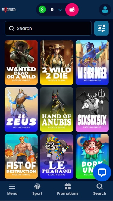 體育板塊提供足球、籃球、網球、冰球、西洋棋、一級方程式賽車、排球、FIFA:Volta、eHorse Racing、點球大戰、匹克球、手球以及許多其他美式運動博彩選項。如果您喜歡博彩,請務必去看看,因為 Wagered Casino 提供來自世界熱門聯賽的精彩比賽和賽事。