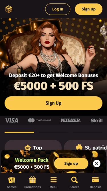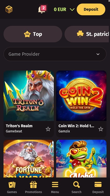主頁頂部預留了一個滾動橫幅,其中展示了一些您可以在這裡領取的最令人興奮的促銷活動。以下列出了網站上最受歡迎和最新的遊戲,以及一些最受歡迎的真人娛樂場遊戲。