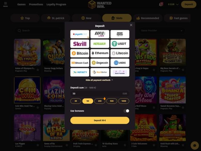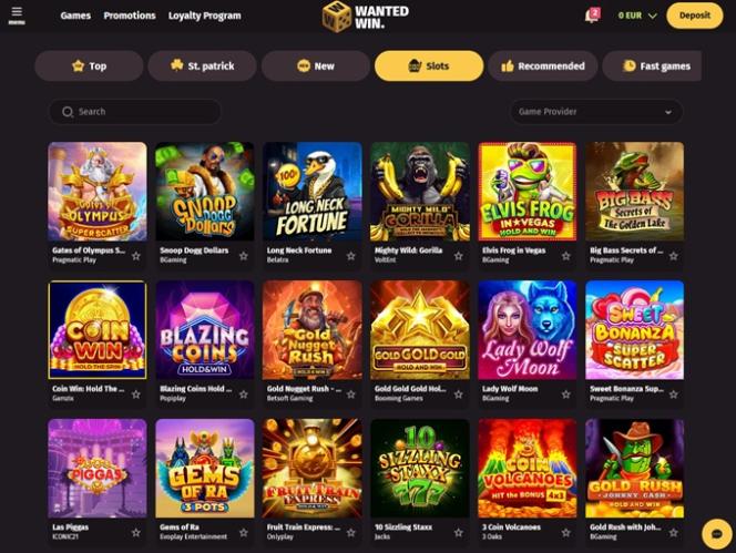 說到 WantedWin 賭場,我們可以看到營運商投入了大量資源,致力於為客戶提供卓越的遊戲體驗,因為在這裡玩遊戲可以讓你瀏覽超過 100 家不同的軟體開發商。其中包括 Pragmatic Play、Microgaming、Relax Gaming、Quickspin 和 Nolimit City 等知名品牌。