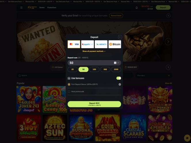 WantedWin 賭場不僅擁有令人興奮的會員計劃,還為玩家提供了許多精彩的促銷和獎金。新玩家將獲得極具誘惑力的迎新優惠,而老玩家則可領取各種其他獎金。