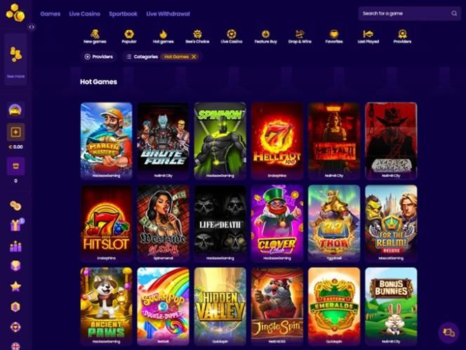 最後,玩家可以探索豐富的釣魚和骰子遊戲。 Wazbee Casino 為玩家準備了令人印象深刻的遊戲陣容,並定期更新遊戲庫,推出新遊戲。