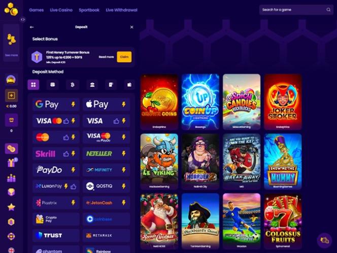 我們很高興地看到該網站已針對 iOS 和 Android 設備進行了全面優化,玩家還可以使用保加利亞語、丹麥語、德語、希臘語、英語、西班牙語、芬蘭語、法語、印地語、印尼語、義大利語、挪威語、波蘭語、葡萄牙語和俄語瀏覽整個賭場。