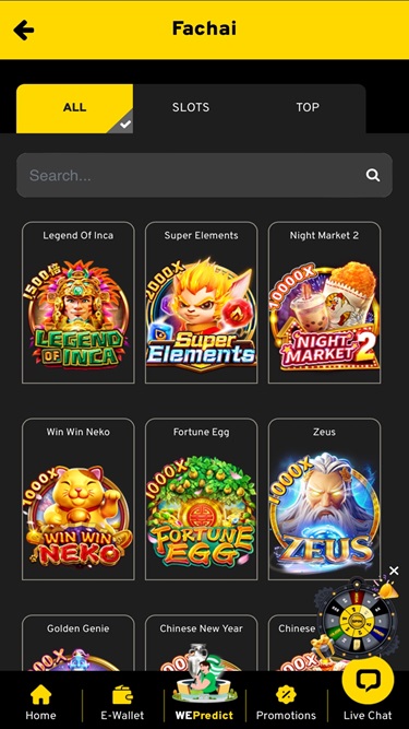 若要存取所有遊戲類別、促銷活動和VIP計劃,請使用主頁頂部的水平選單。這能讓您更快、更輕鬆地找到您喜愛的遊戲並探索新的活動。您也可以使用英語、馬來語、泰語或印尼語瀏覽網站。
