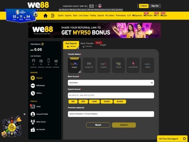 WE88 賭場擁有庫拉索博彩管理局頒發的許可證標識,但該標識目前尚未與任何官方許可證持有者註冊機構關聯。品牌僅接受馬來西亞玩家,誠摯邀請他們加入,體驗精彩的遊戲。