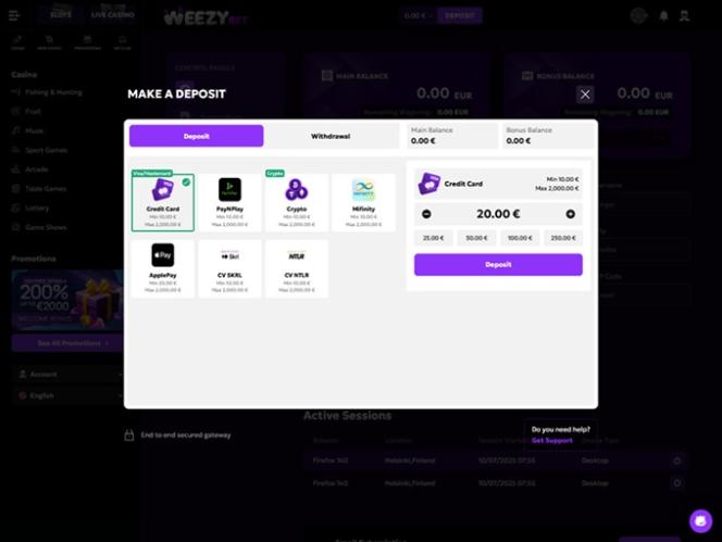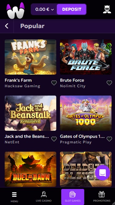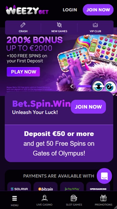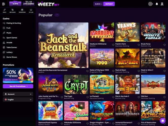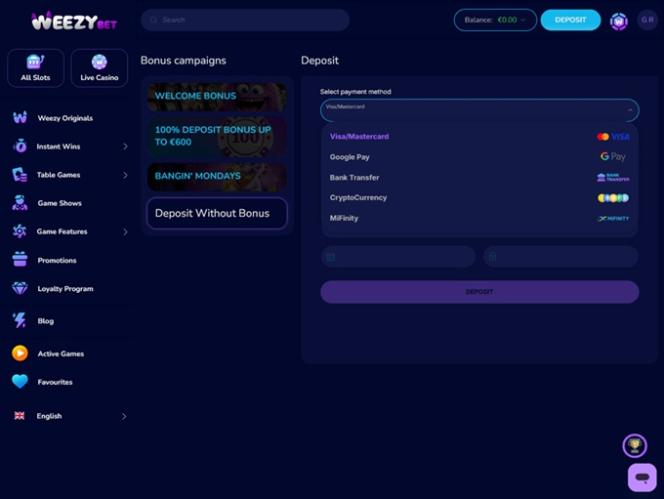 WeezyBet.com 是一個用戶友好的線上賭場,可透過個人電腦和行動裝置存取。因此,無論您喜歡在電腦上賭博還是在旅途中暢玩賭場遊戲,您都可以在所有可用平台上享受快速的加載時間和美觀的介面。