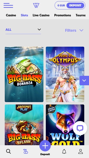 West Casino 提供豐富的視訊老虎機遊戲,據我統計,超過 1,600 款遊戲可供選擇。這些老虎機遊戲來自 NetEnt、Habanero、Leander、Quickspin、Wazdan 等知名品牌。這些遊戲擁有豐富的主題和特色,包括累積獎金。此外,還提供行動老虎機,方便您在手機或平板電腦上投注。
