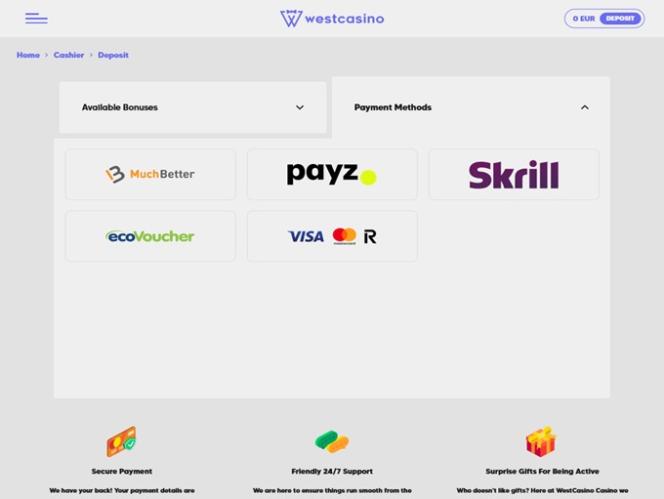WestCasino 網站因為他們的正直與客服⽀援⽽贏得巫師的認證。我們只為值得信賴的最佳網路賭場予以背書, 也很驕傲能夠與 成為 合作夥伴。WestCasino.