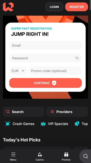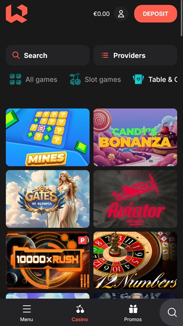網站採用極其流暢、酷炫的配色方案,深色背景與紅色調完美融合,與環境和用戶界面相得益彰,玩家在瀏覽網站所有版塊和賭場遊戲時都能獲得絕佳體驗。一切都直覺易用,載入速度極快,確保您暢享流暢的遊戲體驗。