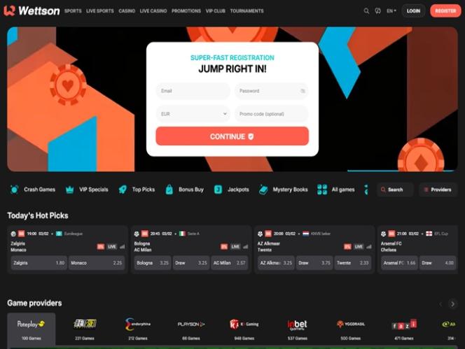 但這還不是全部。 Wettson 還設有專門的體育博彩板塊,您可以在這裡訪問一個龐大的體育博彩平台,每天都有各種各樣的體育賽事和電競比賽。這個博彩平台能夠滿足您最具體的偏好和需求,值得一提的是,玩家還可以參與滾球投注。