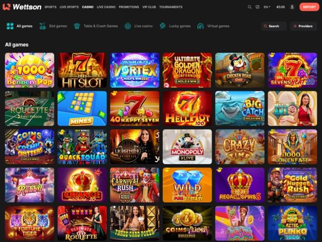 Wettson賭場品牌背後的團隊顯然深諳此道,他們投入了大量精力與資源,為您提供種類繁多的賭場遊戲。他們透過獲得超過110家不同軟體供應商的授權來實現這一目標,這絕非小數目。