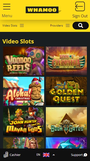 Whamoo 賭場擁有令人印象深刻的老虎機庫,截至本文發佈時,玩家將擁有超過 750 款遊戲。您將看到來自 Wazdan、NetEnt、Red Tiger 等開發商的遊戲。此外,這裡還提供累積獎金和行動老虎機,因此您可以在任何有數據連接的地方測試您的運氣。