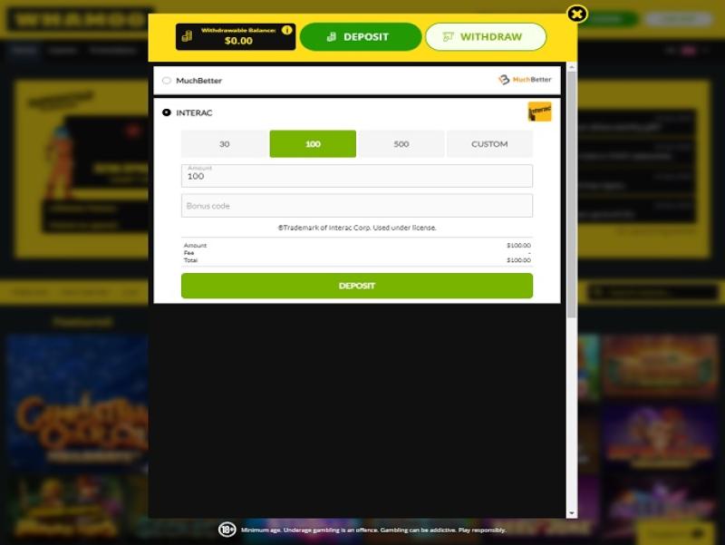 Whamoo 賭場由 Net Entertainment, BetSoft, 1x2gaming, Amatic Industries, Ezugi, iSoftBet, Oryx, Play'n GO, playson, Thunderkick, Yggdrasil, Wazdan, Booming Games, Stakelogic, Pragmatic Play, Red Tiger Gaming, Spinomenal, Red Rake Gaming, Fugaso, FunFair, FUGA Gaming, Kalamba, Revolver Gaming, Skywind, BGAMING, Fazi, Gluck Games, Slot Factory, HungryBear Gaming, Blue Guru Games, Leander Games, Gamomat, BF Games, Bally Wulff, Reflex Gaming, Wild Streak Gaming, Golden Hero, RubyPlay, Gamevy, Japan Technicals Games, Black Pudding Games, Max Win Gaming, RAW iGaming, Spribe, Gaming Corps, Atomic Slot Lab, Reel Kingdom and Indigo Magic提供支持,遊戲透過網頁即時遊戲平台提供,只需使用您的網路瀏覽器即可暢玩。網站設計精良,易於瀏覽。我註冊帳戶後,只花了幾分鐘就上手了。該網站還支援行動端遊戲,方便您在手機或平板電腦上暢玩。