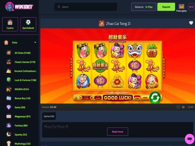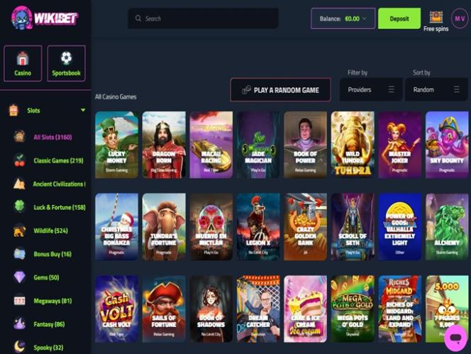 WikiBet 有兩個主要類別:體育博彩和賭場。在賭場部分,您可以找到老虎機、真人遊戲、街機遊戲和賓果遊戲;而體育博彩部分則涵蓋熱門體育聯賽和運動項目,例如足球、電子競技、網球、籃球、棒球、排球以及其他熱門項目。如果您是體育博彩的愛好者,千萬不要錯過這些誘人的體育博彩機會。然而,由於我們更專注於賭場遊戲,因此我們將更深入地回顧可用的賭場內容。