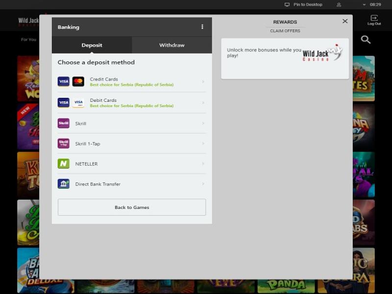 Wild Jack 賭場由 Microgaming, Net Entertainment, Evolution Gaming, Triple Edge Studios, Stormcraft Studios, Switch Studios, Pulse 8 Studios, Games Global, Just For The Win and Fortune Factory Studios提供支持,並擁有數百款遊戲庫。您可以透過下載的軟體或網頁平台造訪賭場,您可以直接在平板電腦或智慧型手機上暢玩。