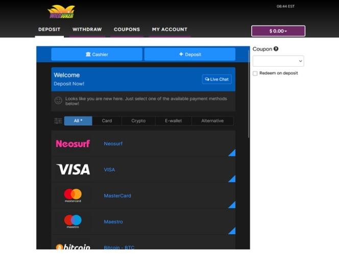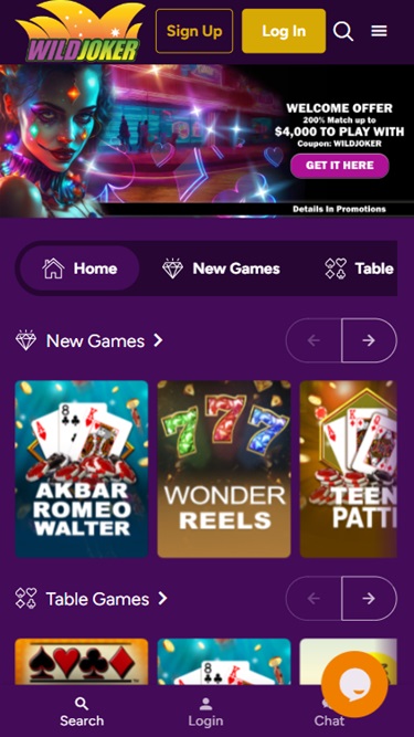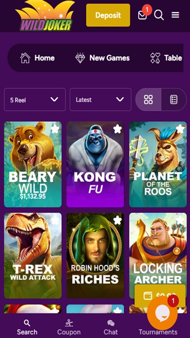 Wild Joker 賭場由 Real Time Gaming提供支持,其遊戲透過網路平台提供,無需下載任何軟體。其他一些 RTG 賭場也提供可下載的軟體,但如今我們認為這已不必要,因為瀏覽器版本已經足夠。 Wild Joker 也支援行動遊戲,您可以在智慧型手機或平板電腦上進行博彩。