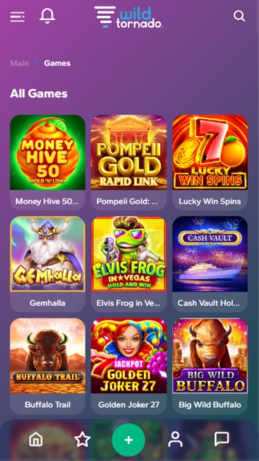 Wild Tornado 賭場由 Microgaming, Net Entertainment, Playtech, BetSoft, 1x2gaming, Amatic Industries, Big Time Gaming, ELK Studios, Evolution Gaming, EYECON, Ezugi, Habanero Systems, iSoftBet, Play'n GO, playson, Quickspin, Relax Gaming, SOFTSWISS, Thunderkick, Vivo Gaming, Yggdrasil, Endorphina, Wazdan, GameArt, Betgames, Booming Games, Pragmatic Play, Nolimit City, Red Tiger Gaming, Booongo, LuckyStreak, Red Rake Gaming, Skillzzgaming, Fugaso, Belatra Games, Fantasma Games, Kalamba, Revolver Gaming, Platipus Gaming, Nucleus Gaming, Triple Edge Studios, BGAMING, Northern Lights Gaming, Evoplay, IGTech, Switch Studios, Electric Elephant Games, Pocket Games Soft, Bulletproof Games, All41 Studios, Gluck Games, Mascot Gaming, NetGame Entertainment, Gameburger Studios, Pulse 8 Studios, Neon Valley Studios, Golden Rock Studios, Swintt, TrueLab Games, SpinPlay Games, Mancala Gaming, SmartSoft Gaming, KA Gaming, Atmosfera, Blue Guru Games, On Air Entertainment, Holle Games, Buck Stakes Entertainment, Games Global, Reevo, Amusnet Interactive, 2by2 Gaming, CT Interactive, Push Gaming, Tom Horn Gaming, Iron Dog Studio, Foxium, Just For The Win, Reflex Gaming, PearFiction Studios, Wild Streak Gaming, Slingshot Studios, Fortune Factory Studios, RubyPlay, 4ThePlayer, AvatarUX, Gamevy, Crazy Tooth Studio, High 5 Games, ReelPlay, SlotVision, Alchemy Gaming, Rarestone Gaming, Snowborn Games, Boomerang Studios, Hacksaw Gaming, Gold Coin Studios, Bang Bang Games, Gamzix, SilverBack Gaming, Peter And Sons, Charismatic, Onlyplay, Gamebeat, Playgon, Area Vegas, 3 Oaks Gaming, Apparat Gaming, Spribe, Print Studios, 1spin4win, HammerTime Games, BetSolutions, Four Leaf Gaming, INO Games, Nailed It! Games, Neko Games, Reel Kingdom, Oros Gaming, Popiplay and Zillion Games提供支持,其遊戲透過基於網頁的即時遊戲平台提供,該平台可直接透過您的網路瀏覽器載入遊戲,無需下載任何軟體。該賭場也接受行動端遊戲,這意味著您可以在智慧型手機或平板電腦上暢玩。